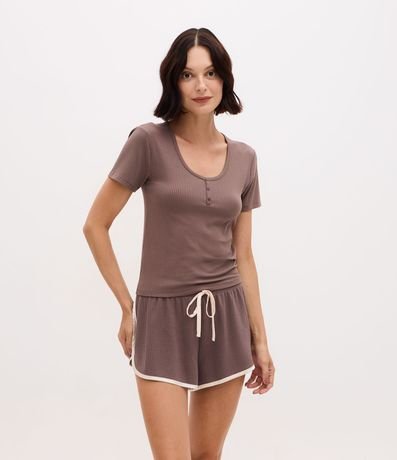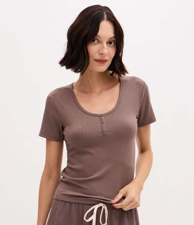 Ref: Blusa de pijama feminino confeccionado em ribana com viscose certificada. Possui modelo regular, mangas curtas e botões no decote.