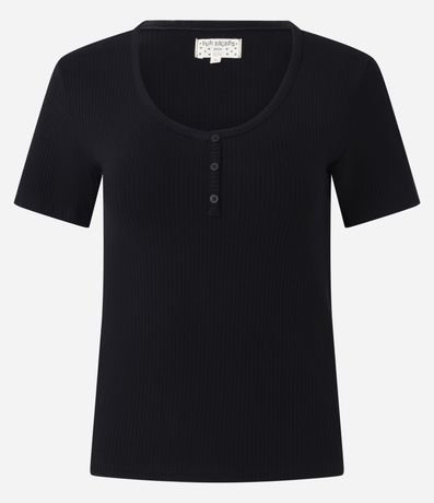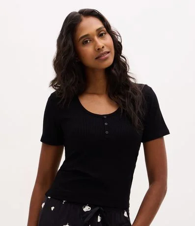 Ref: Blusa de pijama feminino confeccionado em ribana com viscose certificada. Possui modelo regular, mangas curtas e botões no decote.