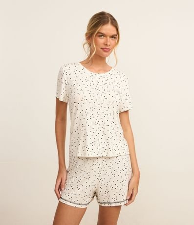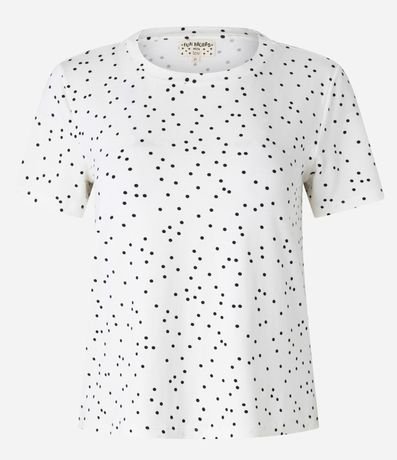 Ref: Peça avulsa de pijama confeccionada em viscose certificada. A camiseta tem gola redonda, mangas curtas e estampa de bolinhas.