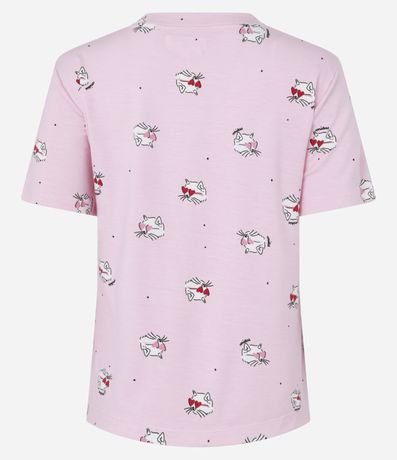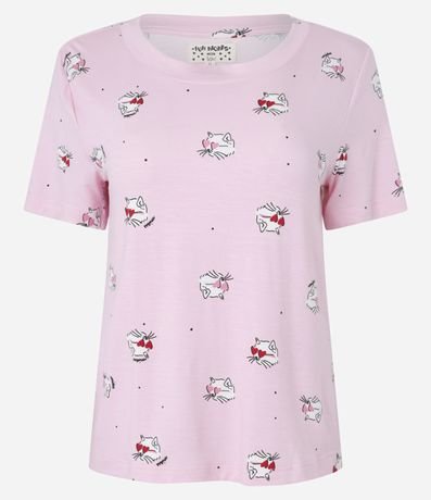 Ref: Blusa de pijama manga curta em viscose com estampa de gato.