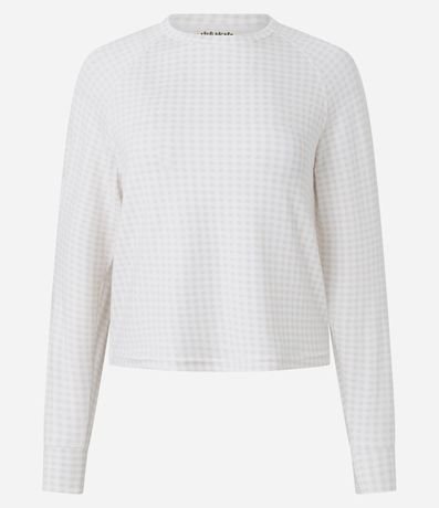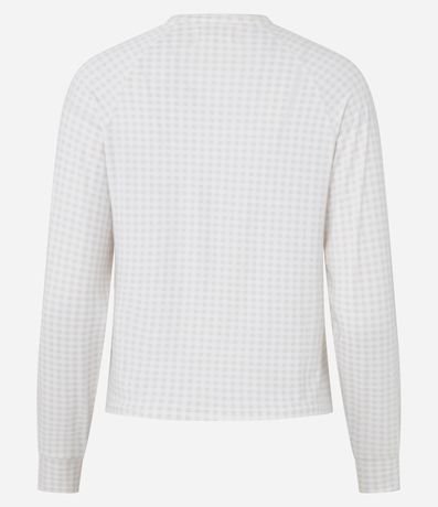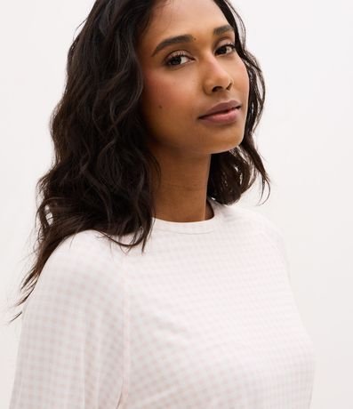 Ref: Blusa de pijama feminino confeccionado em poliéster certificado. Possui modelo com manga longa, gola redonda, estampa xadrez e toque peach -- macio e confortável para o seu descanso!