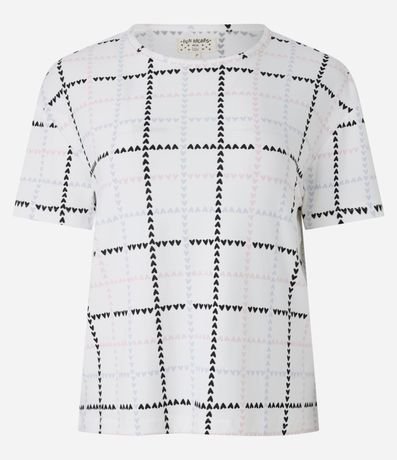 Ref: Blusa de pijama com gola redonda e mangas curtas. Possui estampa xadrez formada por coraçõezinhos. Peça avulsa.