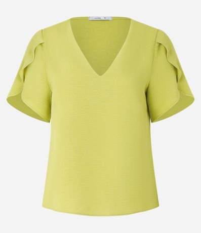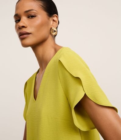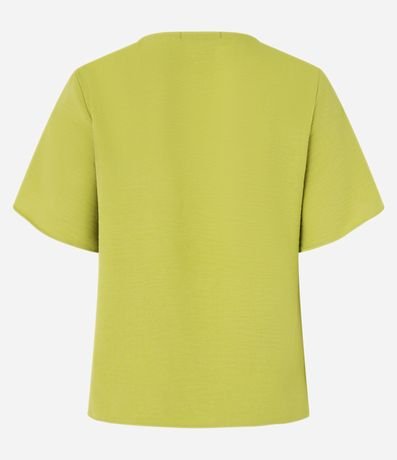 Ref: Blusa feminina confeccionada em tecido airflow, com gola V, manga curta com transpasse e textura. Peça confeccionada com boas práticas ambientais.