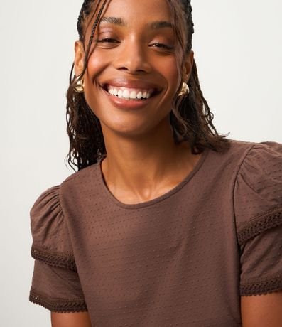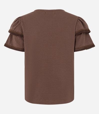 Blusa em Algodão com Babado na Manga e Detalhe Efeito Crochê