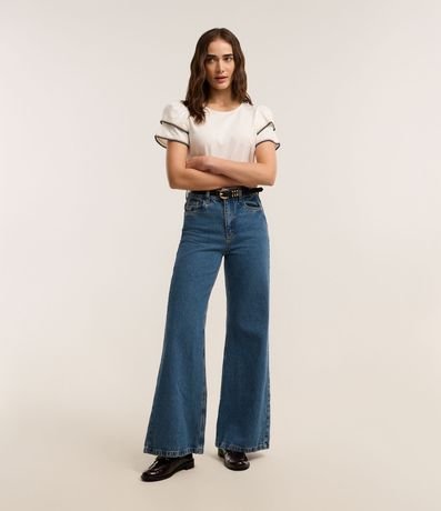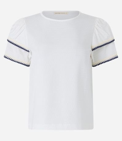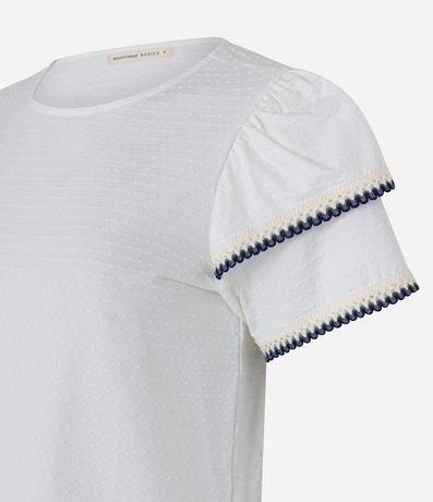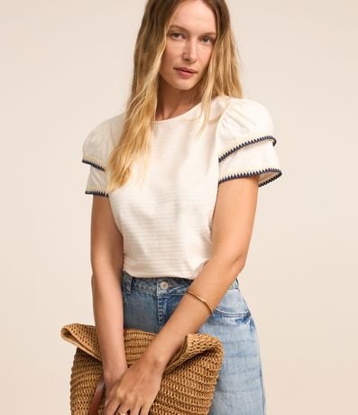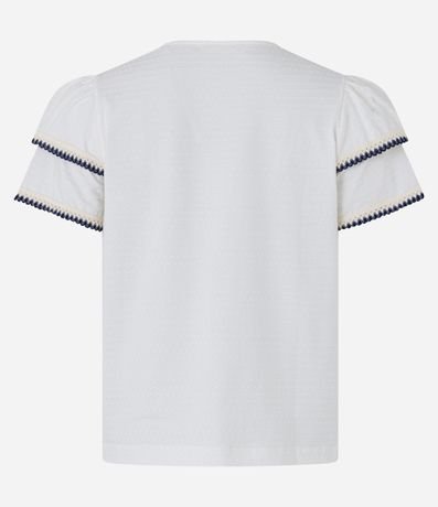 Blusa em Algodão com Babado na Manga e Detalhe Efeito Crochê