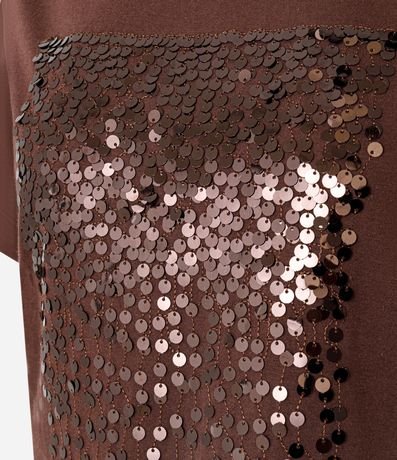 Ref: Blusa slim, em algodão, com gola redonda, mangas curtas e paetês aplicados com efeito chuva. Este produto possui algodão certificado BCI em sua composição, além de ter sido produzido através de processos mais sustentáveis, sendo ambientalmente mais responsável.