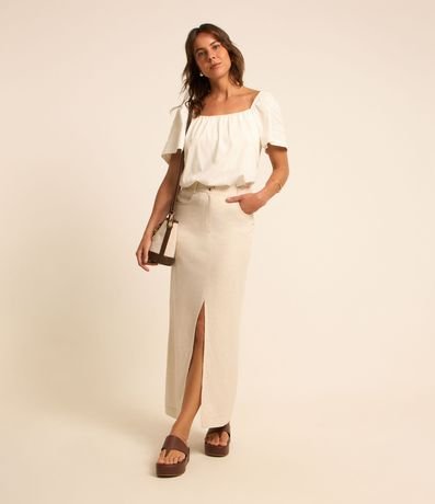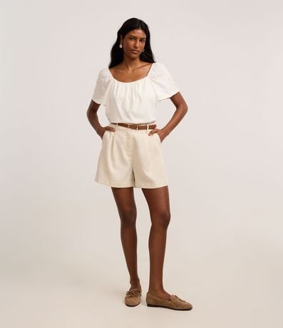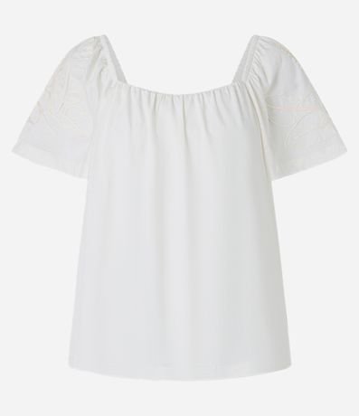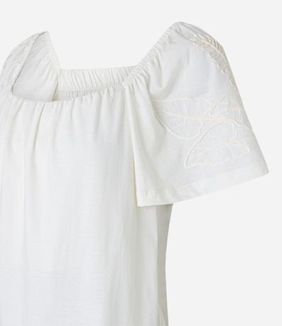 Ref: Blusa manga curta, confeccionada em algodão e bordado de folhagens nas mangas.