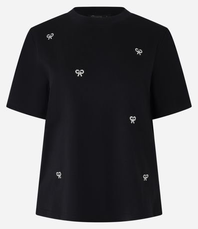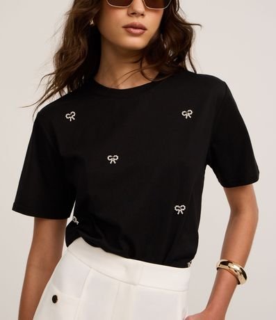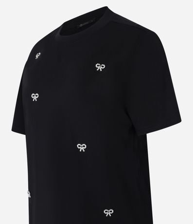 Blusa em Algodão com Bordado de Laços com Pérolas