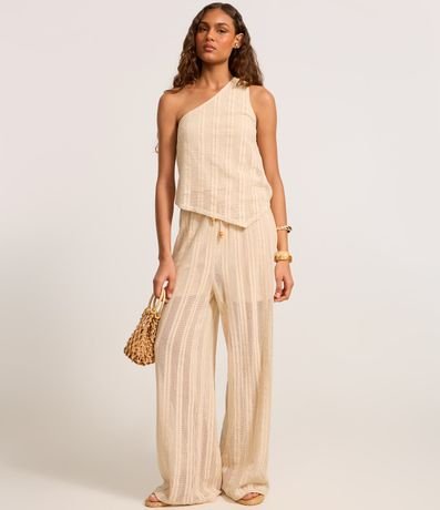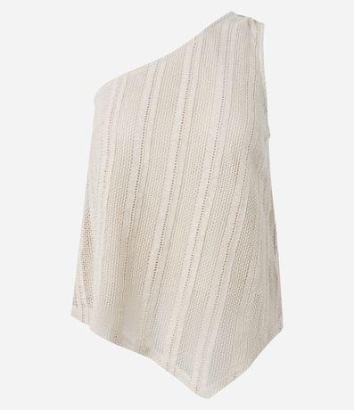 Blusa com decote um ombro só, confeccionada em algodão bci mais sustentável, textura em listras e barra assimétrica.
