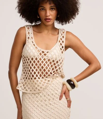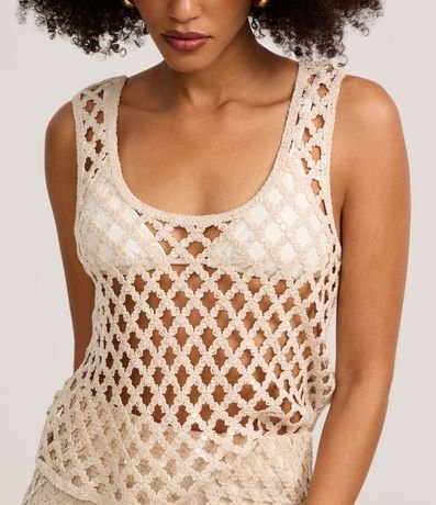 Ref: Blusa sem mangas, confeccionado em algodão, com decote U e alças largas. Peça com paetês metalizados com pontos vazados e tecido em efeito crochê.. Este produto possui material mais sustentável em sua composição, sendo ambientalmente mais responsável.