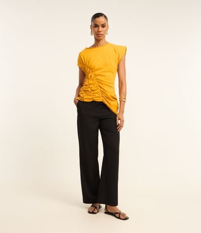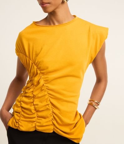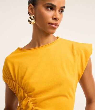Ref: Blusa manga curta, confeccionada em algodão bci mais sustentável, produzida em boas práticas ambientais e drapeado frontal.