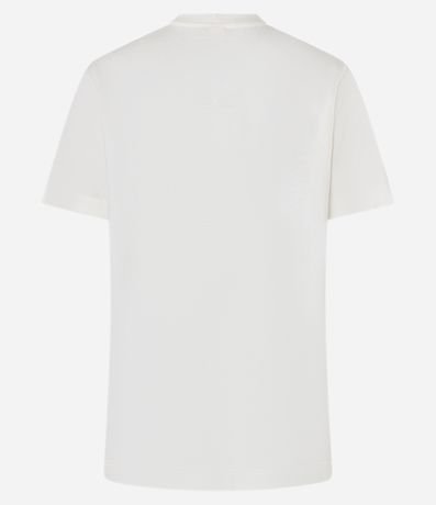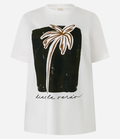 Blusa de mangas curtas, confeccionada em algodão, com gola redonda e estampa minimalista com coqueiro estampado sobre um bloco de cor mais lettering caligráfico "dias de verão" logo abaixo. Este produto possui algodão certificado BCI em sua composição, além de ter sido produzido através de processos mais sustentáveis com boas práticas ambientais, sendo ambientalmente mais responsável.