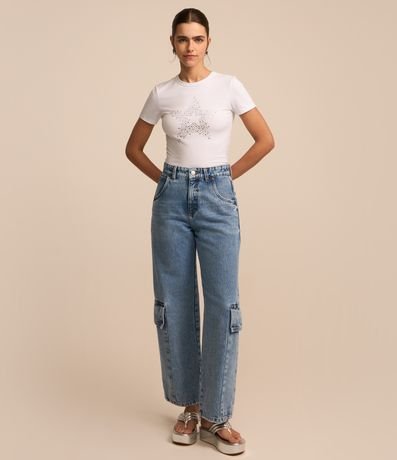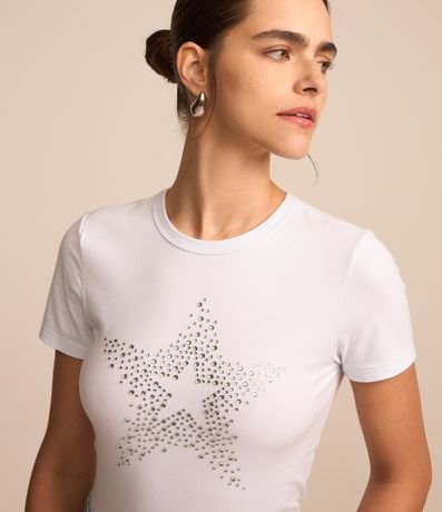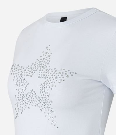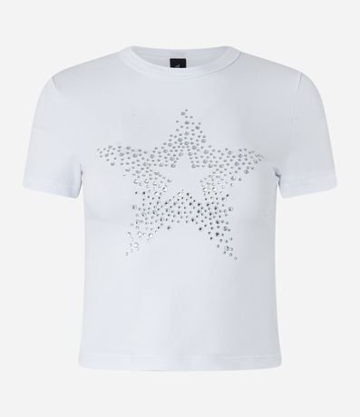 Blusa manga curta confeccionada em algodão mais sustentável e estampa frontal de estrela em strass.