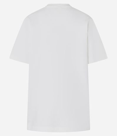 Ref: Blusa de mangas curtas, confeccionada em algodão, com gola redonda e estampa artística com tela de mulher com roupa de praia e brincos de argolas seguido do lettering caligráfico "city to beach". Este produto possui algodão certificado BCI em sua composição, além de ter sido produzido através de processos mais sustentáveis, sendo ambientalmente mais responsável.