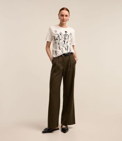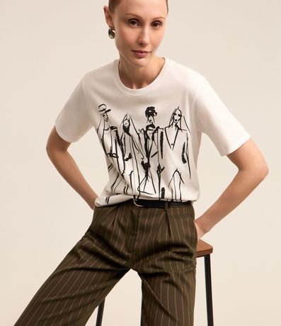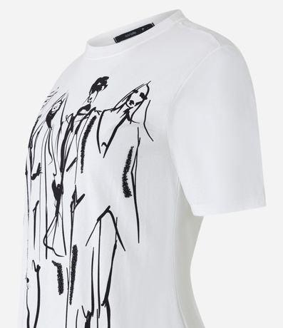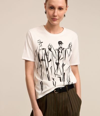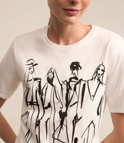 Ref: Blusa feminina, confeccionada em algodão, com gola redonda, mangas curtas e estampa mulheres outline.