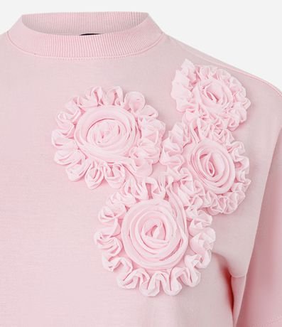 Ref: Blusa boxy de mangas curtas, confeccionada em algodão, com gola redonda e flores de tecido aplicadas na cava. Este produto possui algodão certificado BCI em sua composição, além de ter sido produzido através de processos mais sustentáveis com boas práticas ambientais, sendo ambientalmente mais responsável.