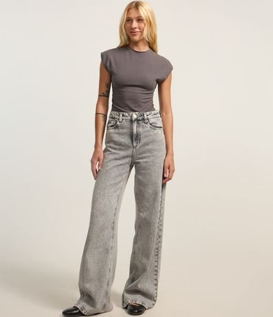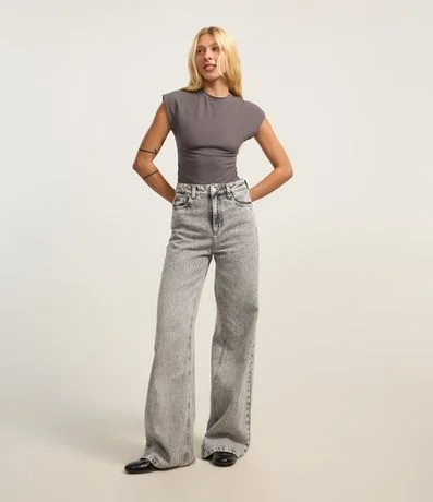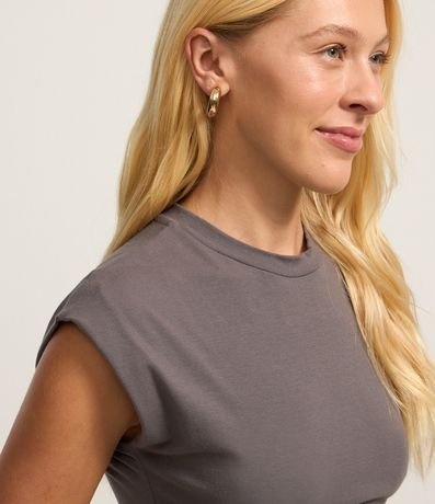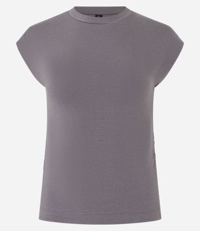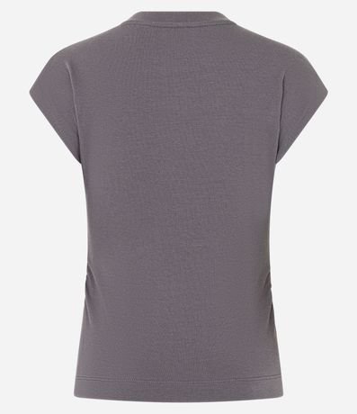 Blusa manga curta confeccionada em algodão mais sustentável. Peça com gola alta e franzido na lateral.