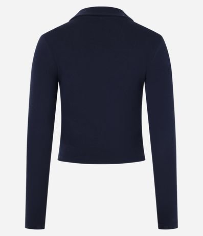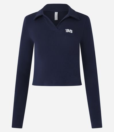 Ref: Blusa manga longa confeccionada em algodão bci mais sustentável, gola polo com decote v e bordado no peito, 98.