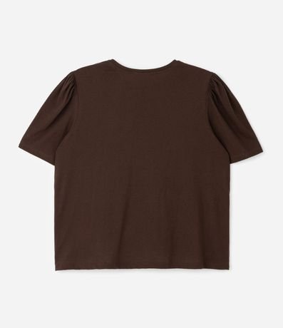 Ref: Blusa plus size com manga curta bufante. Sem estampa e confeccionada em material responsável, a peça além de conforto proporciona inúmeras combinações. Use no dia a dia e tenha um curinga para todas as ocasiões.