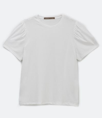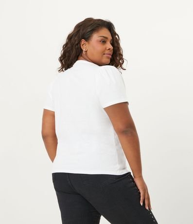 Ref: Blusa plus size com manga curta bufante. Sem estampa e confeccionada em material responsável, a peça além de conforto proporciona inúmeras combinações. Use no dia a dia e tenha um curinga para todas as ocasiões.