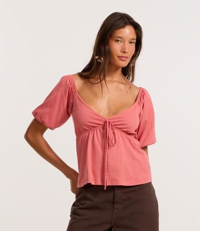 Blusa em Algodão com Mangas Bufantes e Amarração Frontal