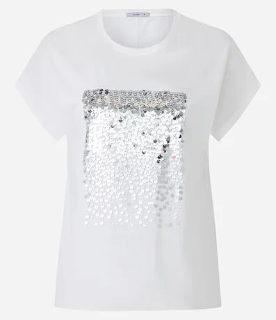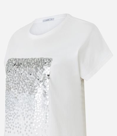 Ref: Blusa manga curta, em algodão e com bordado quadrado em paetês.