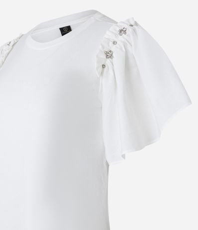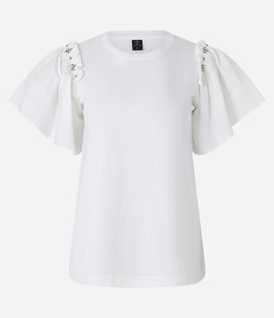 Blusa em Algodão com Strass na Manga Bufante