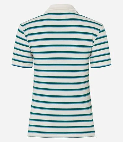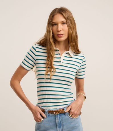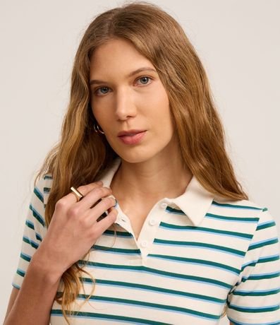 Ref: Blusa manga curta, confeccionada em algodão bci mais sustentável, botões no decote, gola polo contrastante e listras.