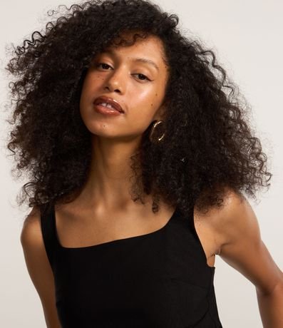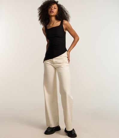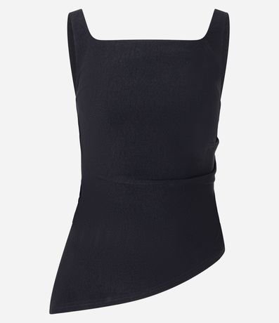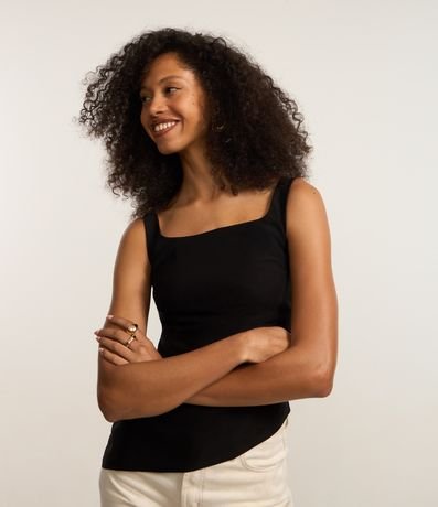 Blusa de alça larga, confeccionada em bengaline com decote quadrado e barra assimétrica.