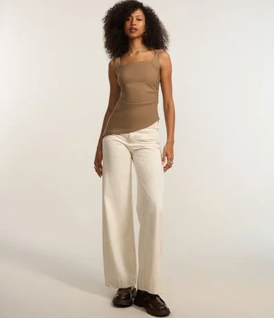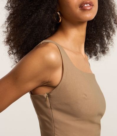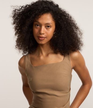 Ref: Blusa de alça larga, confeccionada em bengaline com decote quadrado e barra assimétrica.