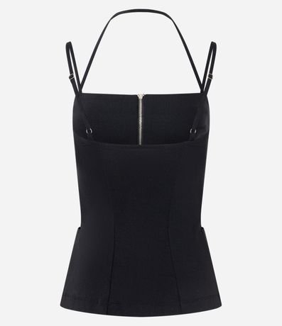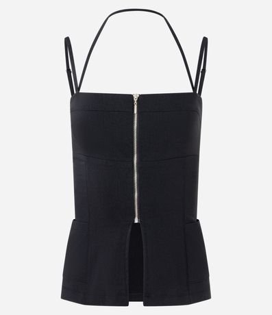Blusa em Bengaline com Zíper Frontal e Alcinhas