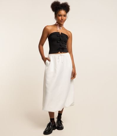 Ref: Blusa tomara que caia com recorte em v no busto, confeccionada em bengaline e com lacinhos frontais.