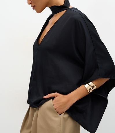 Blusa em Cetim com Gola Alta e Manga Esvoaçante