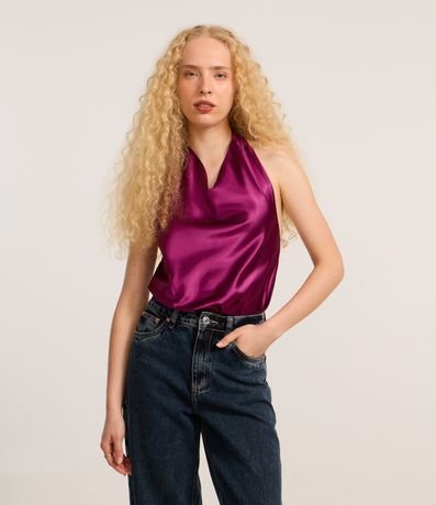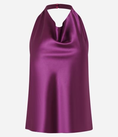 Ref: Blusa frente única, confeccionada em cetim com decote degagê e costas abertas.