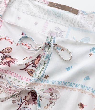 Ref: Blusa feminina confeccionada em chalis mais sustentável através de boas práticas ambientais, no modelo curto. Possui decote quadrado, mangas sino, amarrações frontais e estampa paisley, que garantem um toque delicado e moderno. Modelagem Curve & Plus Size, perfeita para looks casuais com conforto e estilo.