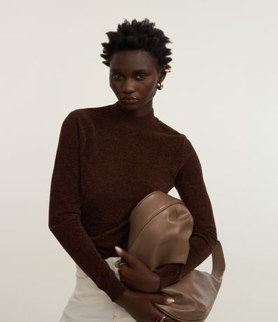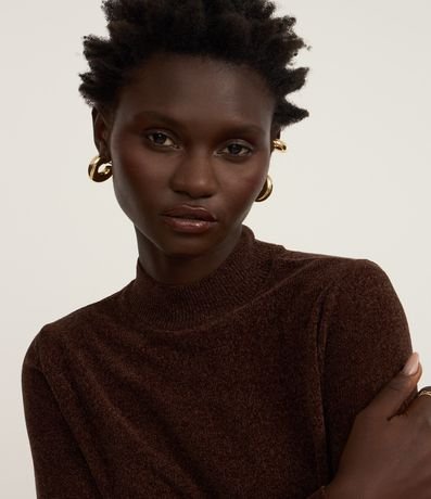 Blusa quentinha, confeccionada em chenille, com gola altinha e mangas longas.