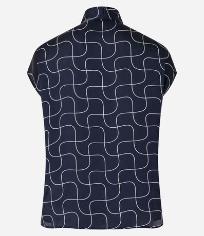 Ref: Blusa acetinada em chiffon com gola laço altinha, sem manga e estampado geométrico.