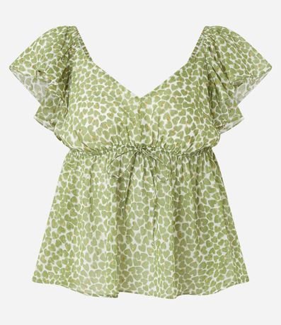 Ref: Blusa sem mangas, confeccionada em chiffon, com decote V, babados na manga busto franzido com recorte e amarração. Conta com lastex nas costas e estampa coraçõezinhos. Este produto foi fabricado através de processos mais sustentáveis, sendo ambientalmente mais responsável.