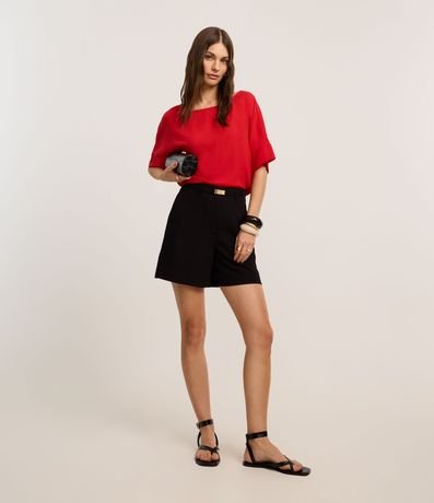 Ref: Blusa de mangas curtas, confeccionada em chiffon, com decote canoa.
