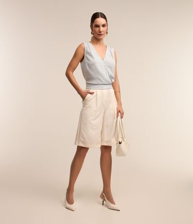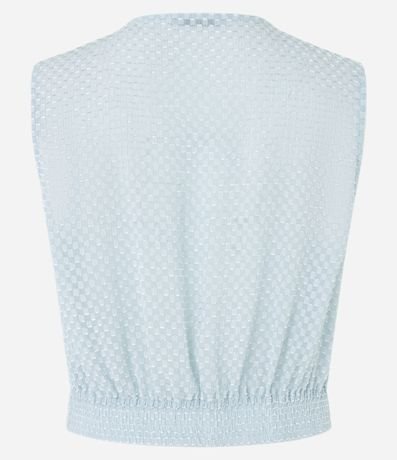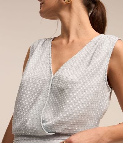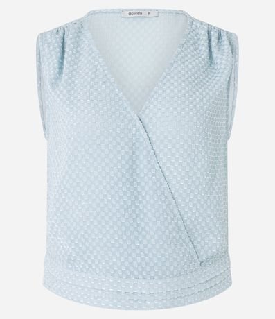 Blusa feminina, confeccionada em chiffon, com decote V transpassado, sem mangas com texturas.