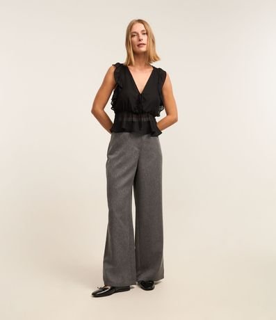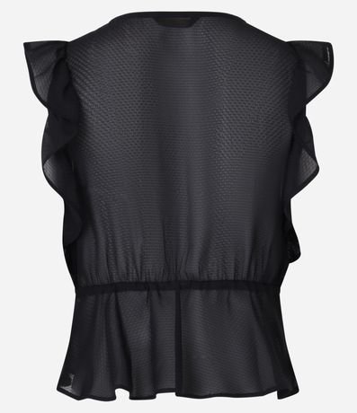 Blusa sem mangas, confeccionada em chiffon através de boas práticas ambientais, com gola redonda. Possui babados e decote V