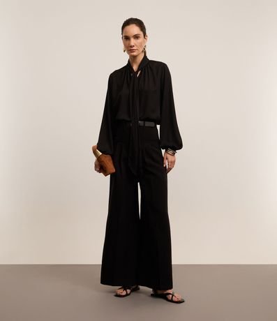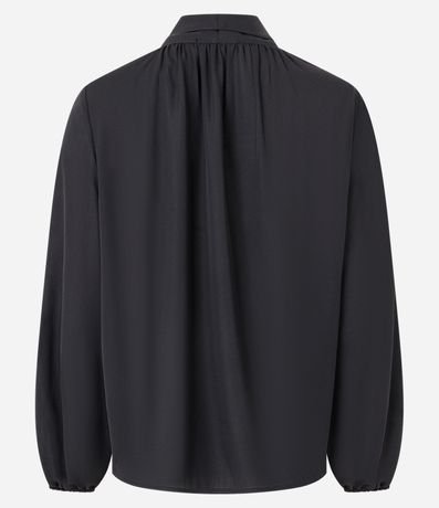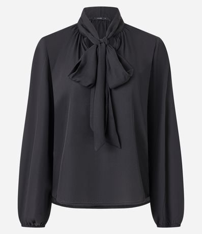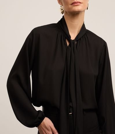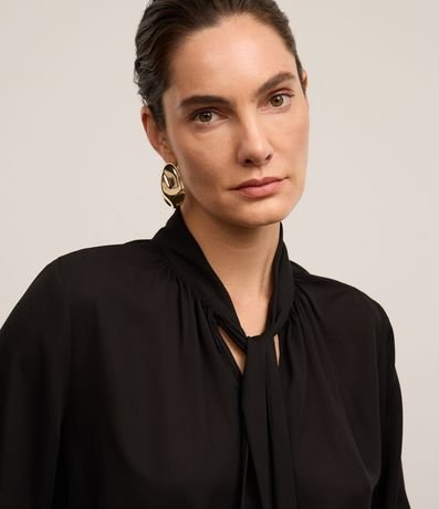 Ref: Blusa de mangas longas amplas, confeccionada em chiffon, com gola laço e elásticos nos punhos. Este produto foi fabricado através de processos mais sustentáveis, adotando boas práticas ambientais.