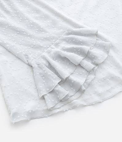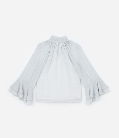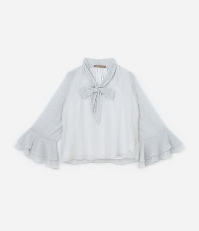 Ref: Blusa feminina Curve & Plus Size confeccionada em chinffon com boas práticas ambientais, peça com laço na gola, mangas longas com babados e textura.