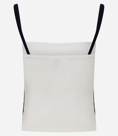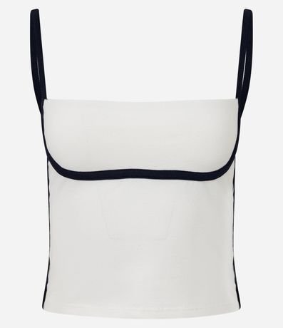 Blusa feminina confeccionada em cotton mais sustentável. Possui decote quadrado, alças finas e detalhes contrastantes.
