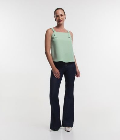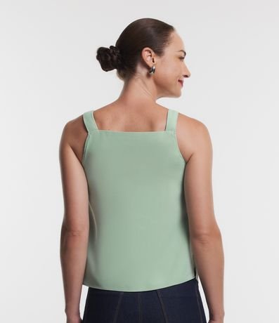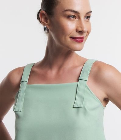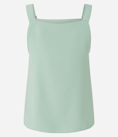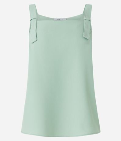 Ref: Blusa em crepe, com decote quadrado, alças com detalhamento e superfície sem estampa.