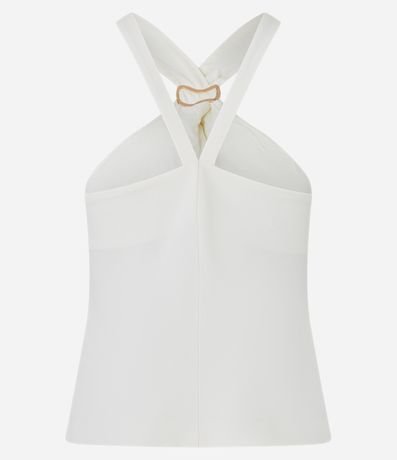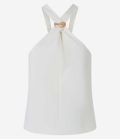 Blusa em Crepe com Aviamento e Franzido na Gola Halter
