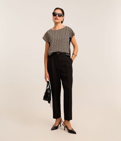 Blusa em Crepe com Contraste Lateral e Estampa Geométrica