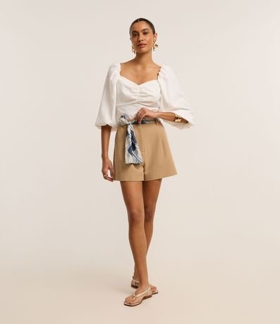 Blusa em Crepe com Decote Coração e Manga Ampla