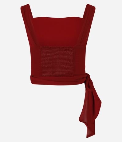 Blusa em Crepe com Decote Quadrado e Faixa na Cintura