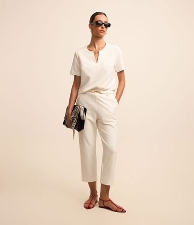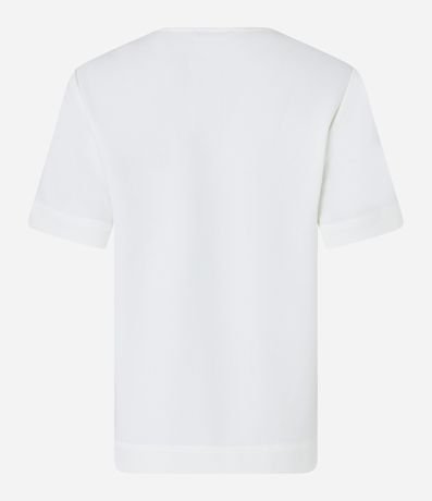 Ref: Blusa feminina, confeccionada em crepe, com detalhe de metal na gola e mangas curtas.